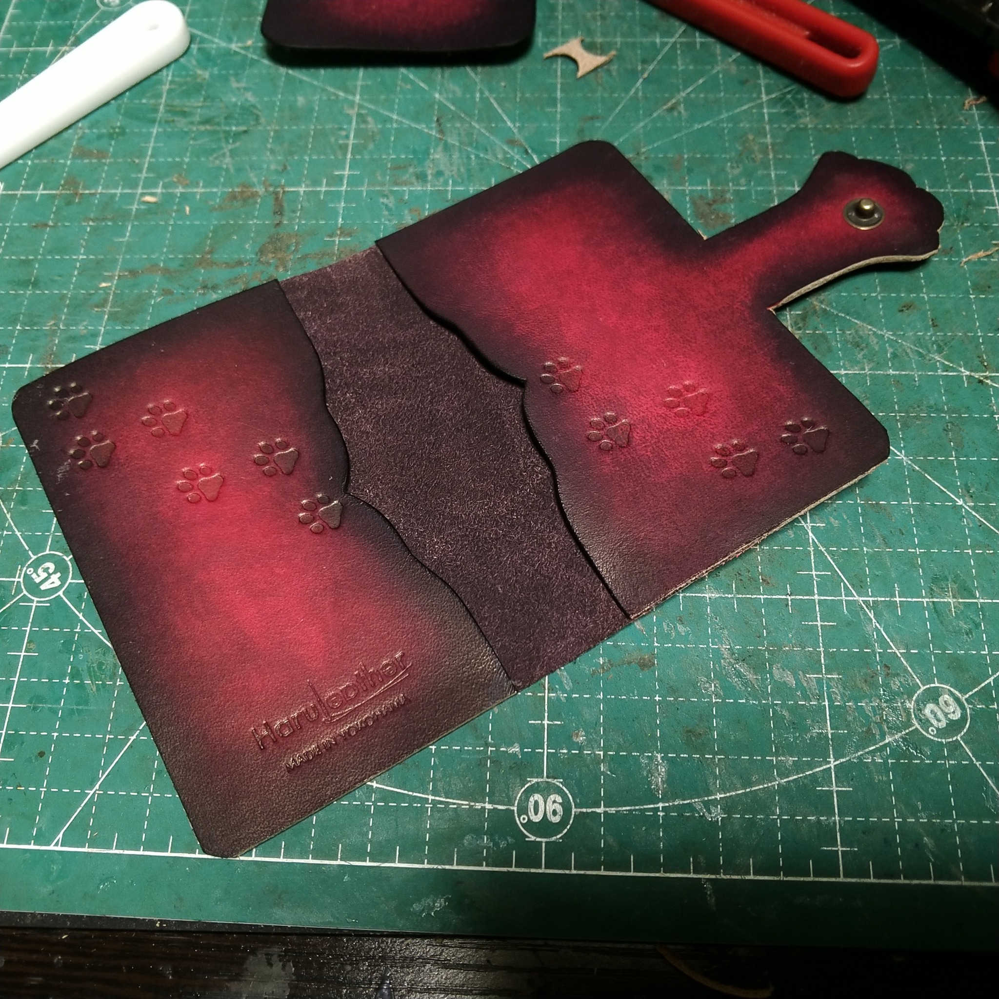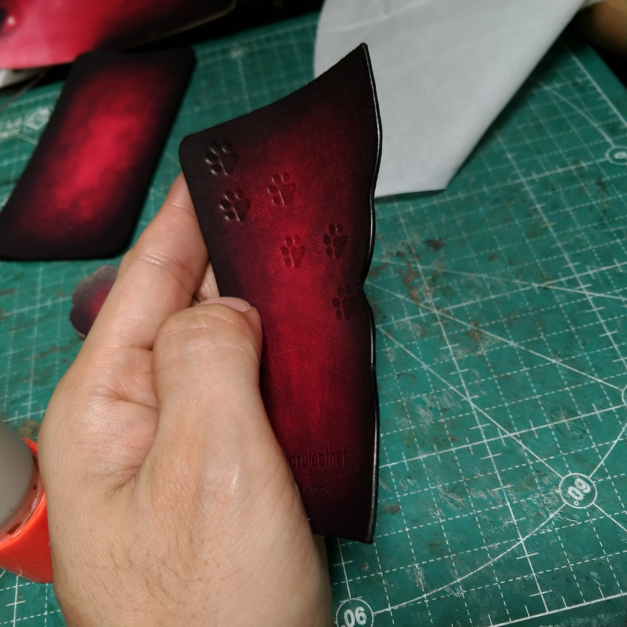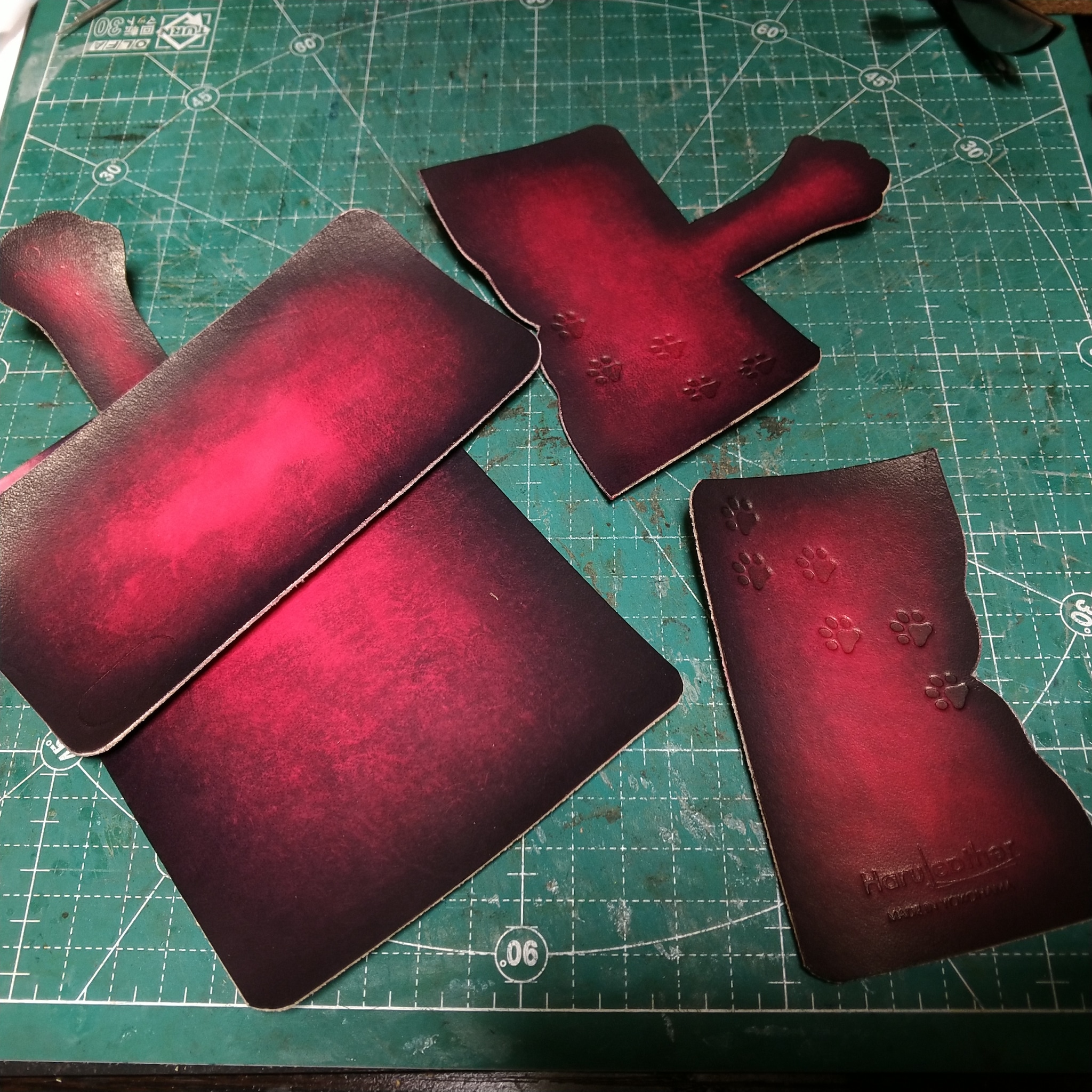 革を切り出し手染めにてアンティーク染めをしていきました^^*