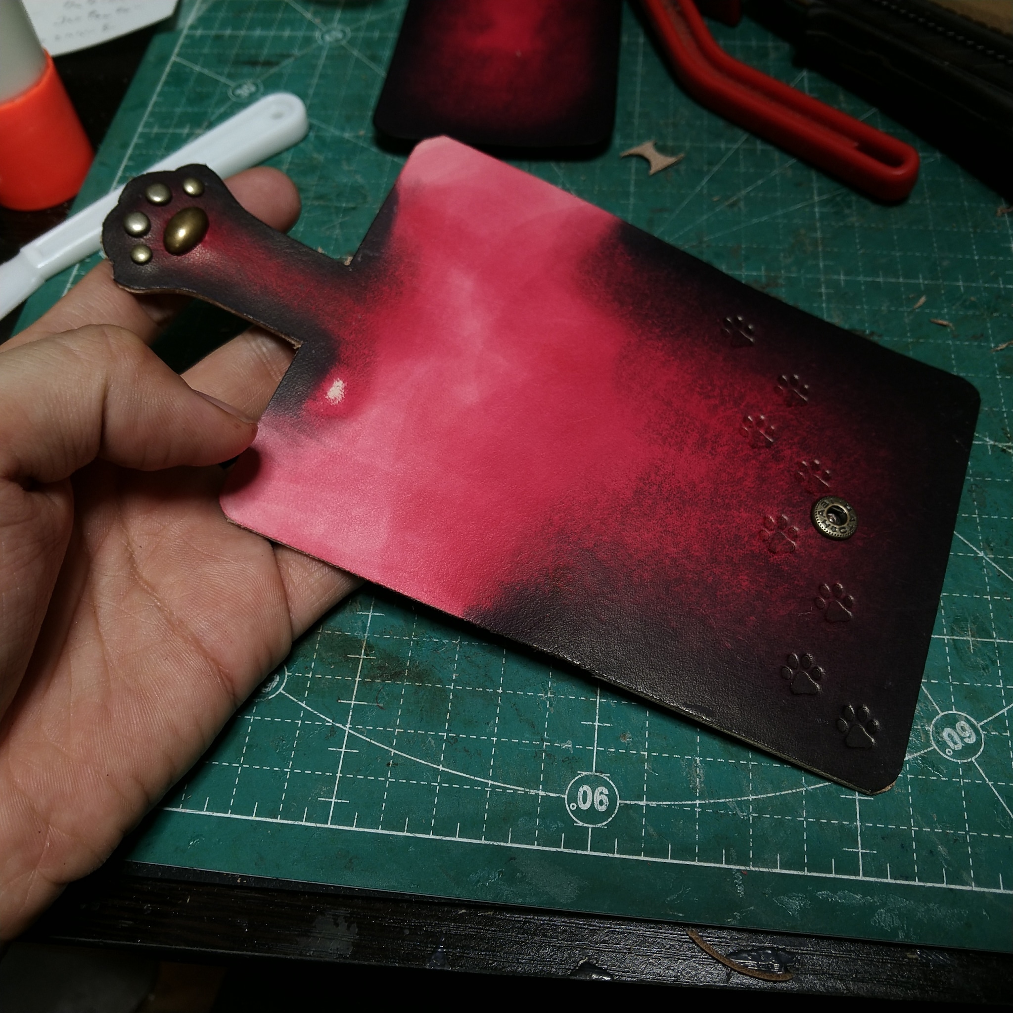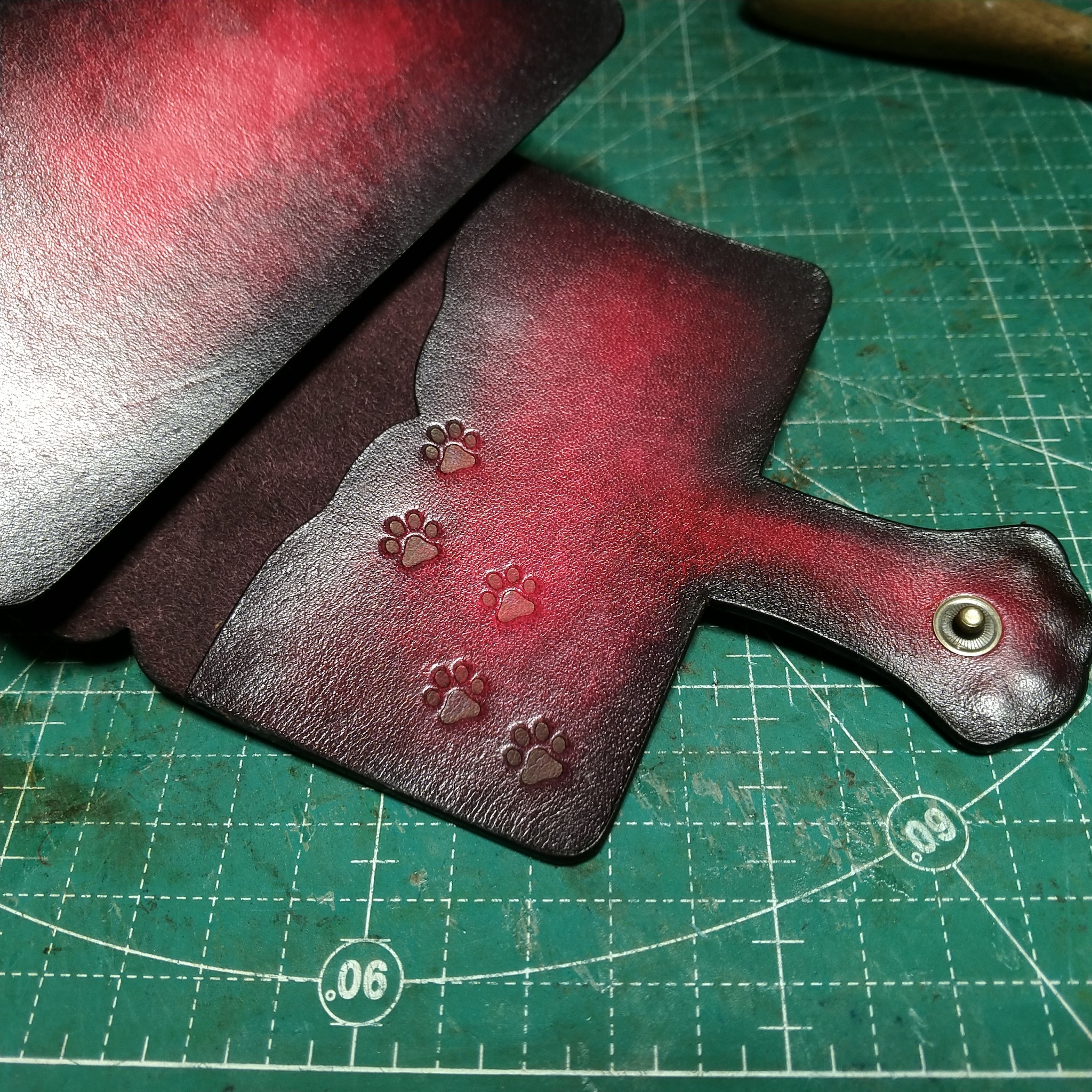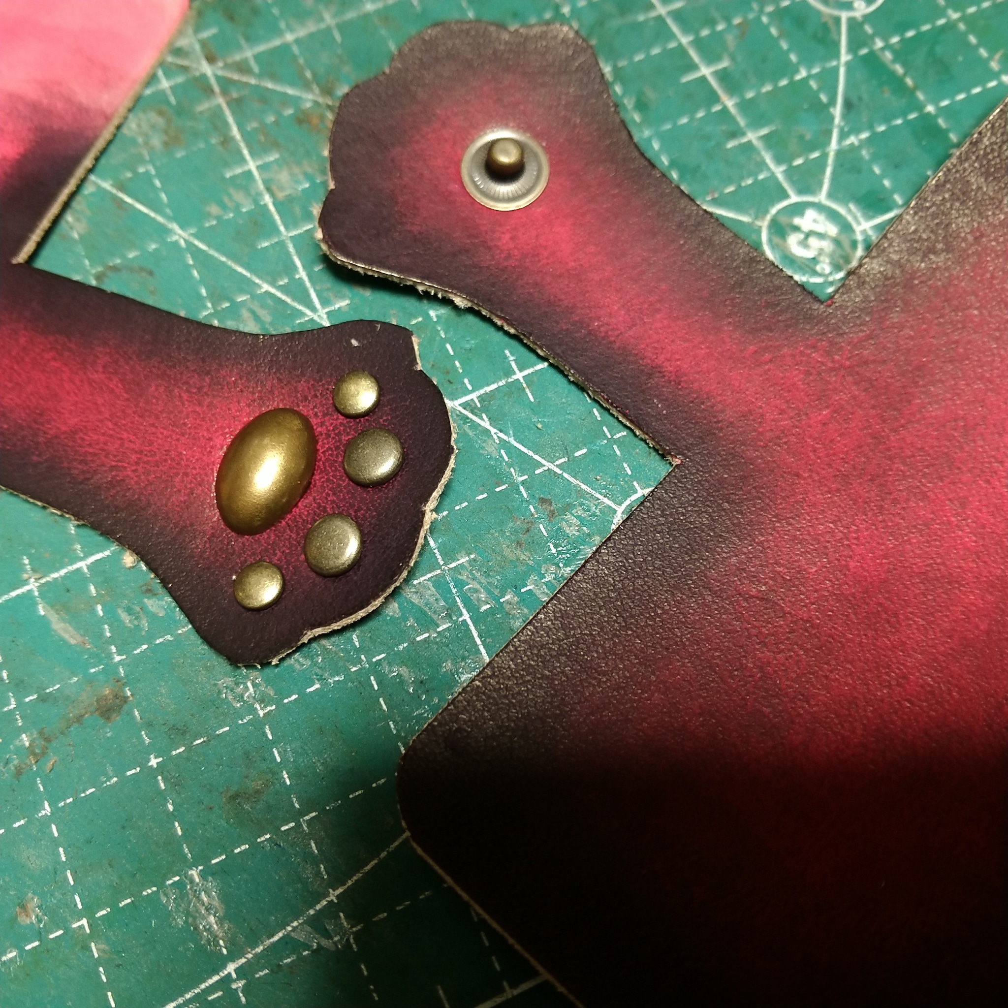 革を切り出し手染めにてアンティーク染めをしていきました^^*